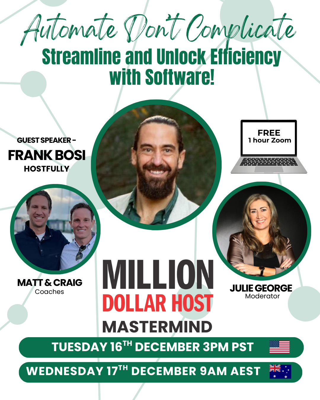 Register to Access Zoom LinkStreamline your STR business and reclaim your time with guest expert Frank Bosi from Hostfully.